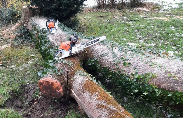 Bei Sturmschäden sind wir rund um die Uhr für Sie erreichbar. Wir sichern Gefahrenstellen ab und beseitigen umgestürzte Bäume schnell und sicher.