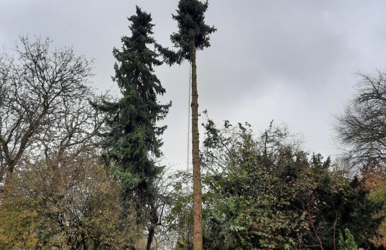 Auch schwierig oder gefährlich stehende Bäume fällen wir sicher und kontrolliert. Dank moderner Technik und Erfahrung erledigen wir jeden Einsatz zuverlässig.